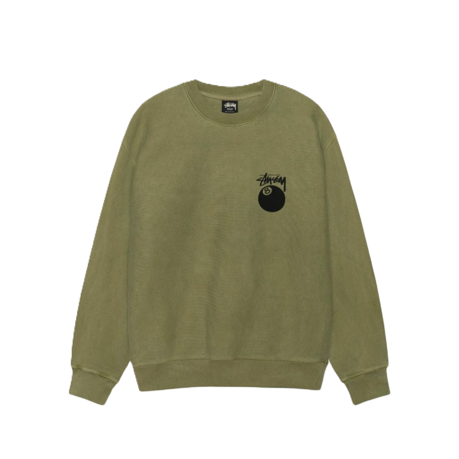 Stussy 8 Ball Crew Pigment Dyed in Olive