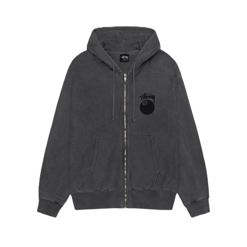 Der Stüssy 8 Ball Zip Hoodie in Schwarz ist aus schwerem 14-oz-Baumwollfleece gefertigt und bietet dank der gebürsteten Innenseite ein besonders weiches und warmes Tragegefühl. Die hochwertige Pigmentfärbung verleiht jedem Hoodie eine individuelle Note, während der Siebdruck mit wasserbasierter Tinte für ein geschmeidiges Finish sorgt. Mit durchgehendem YKK-Reißverschluss und entspannter Passform ist diese Kapuzenjacke ideal für den Alltag.