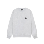 stussy basic crew pigment dyed in ash heather.crewneck aus heavyweight fleece.100 % baumwolle.pigment dyed für soften, leicht verwaschenen look.boxy fit