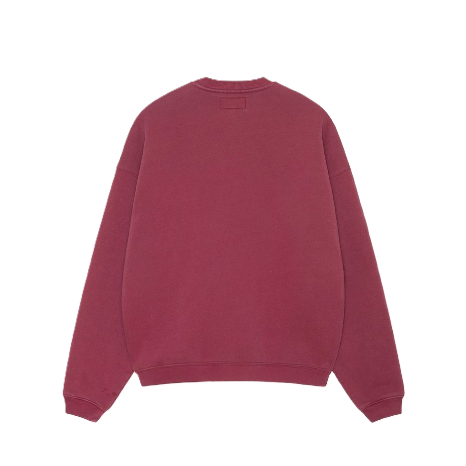 stussy big crackle sport crew in burgundy.